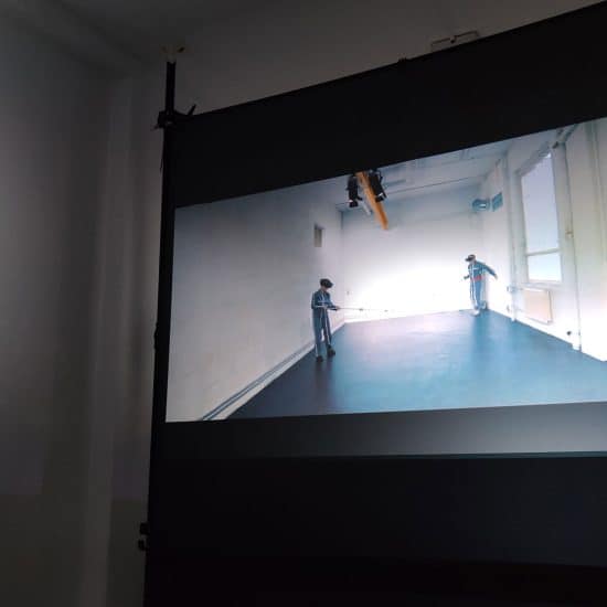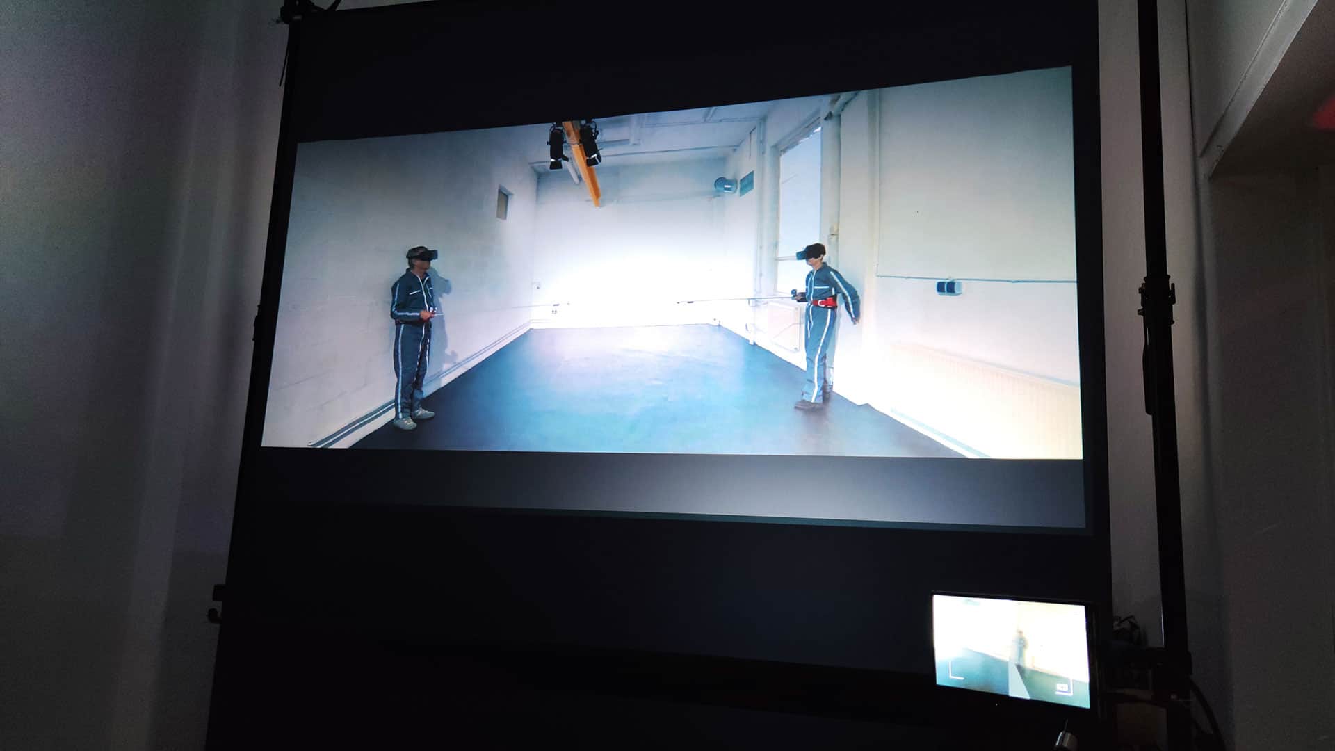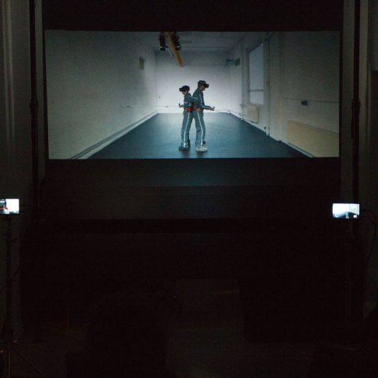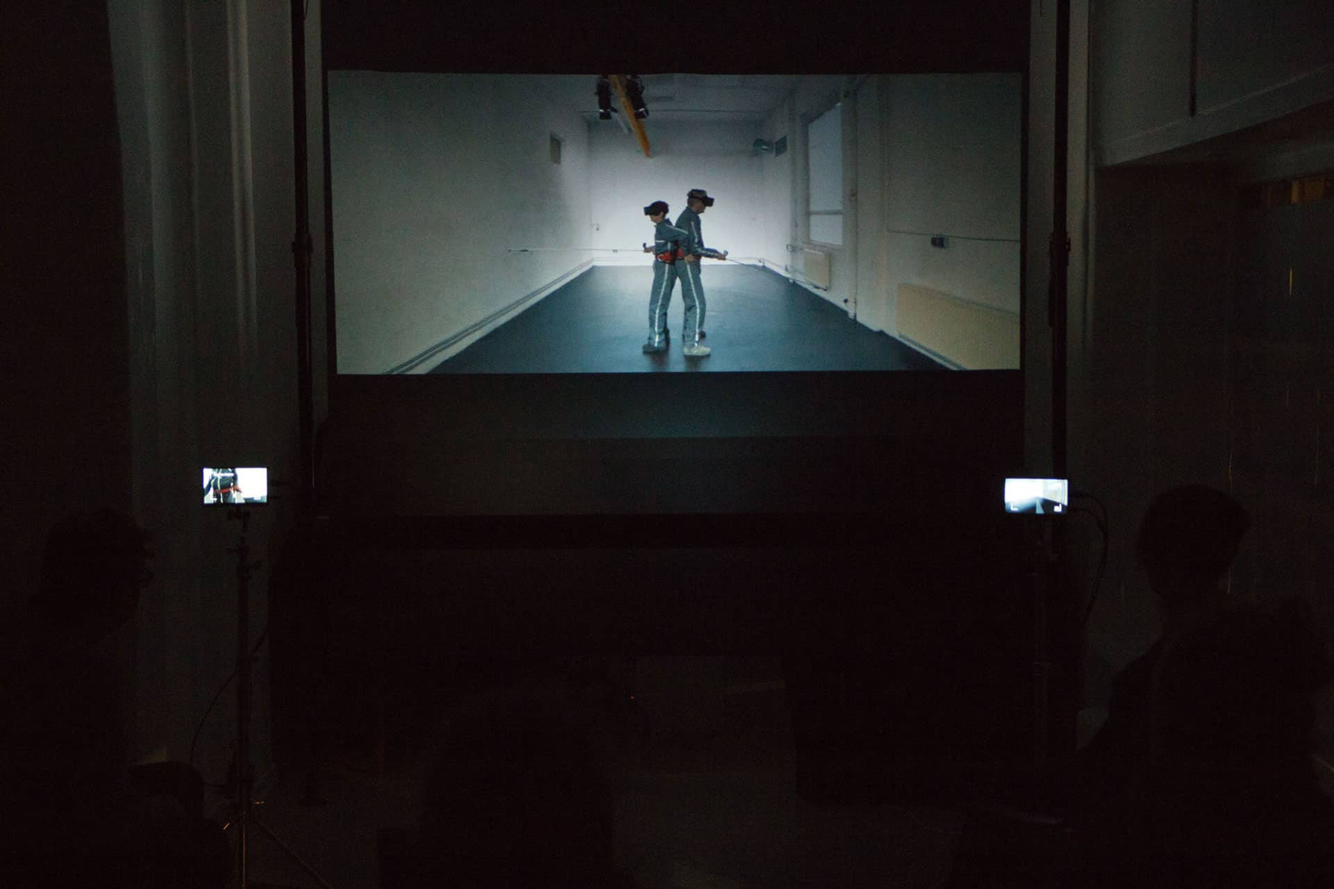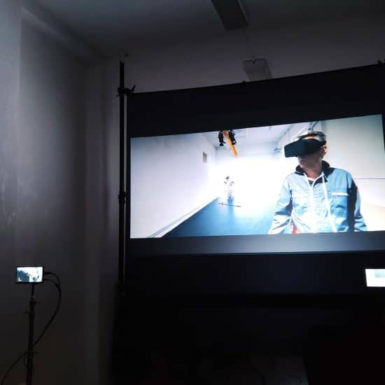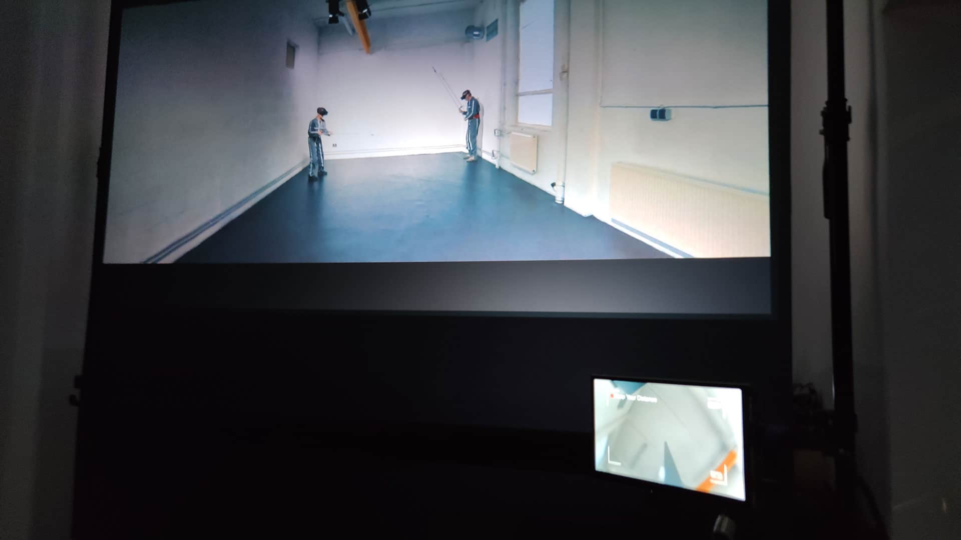 Zwei Performer*innen interagieren im Raum über VR-Brillen aus Sicht einer ihrem Körper 1,5 Meter vorgelagerten Kameraperspektive. Die Videoperformance macht sowohl beide Subjektiven, als auch beide Performer*innen in der Totalen sichtbar. Auf einer zweiten Ebene befragt die Performance, ob und wie die sogenannte „Liveness“ in einem von Abstand und medialer Vermittlung geprägten Alltag wieder gefunden werden kann.