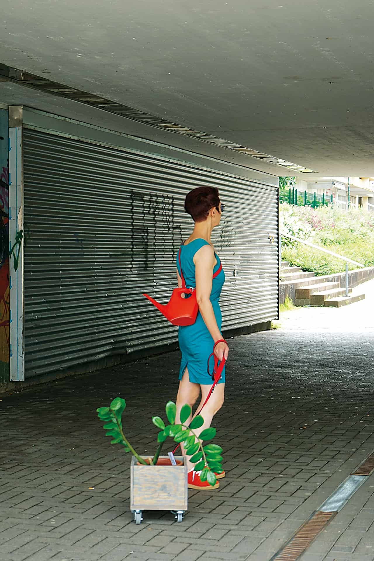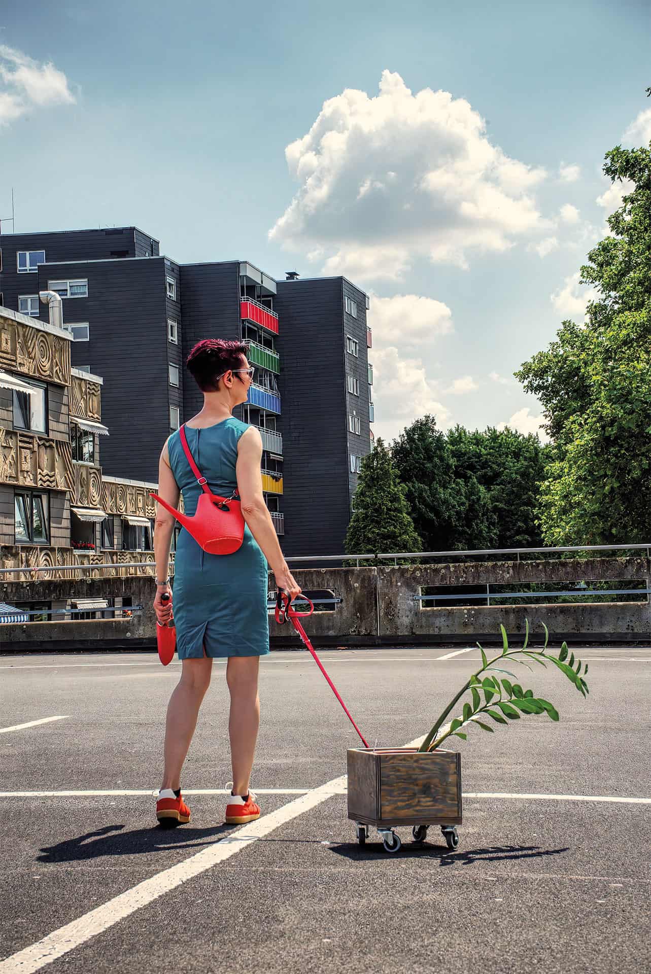 Die Performance thematisiert das Zusammenleben von Pflanzen und Humanoiden im urbanen Raum. Zu sehen sind an dieser Stelle ausgewählte Motive der fotografischen Serie, die aus der Performance in Monheim hervor ging.