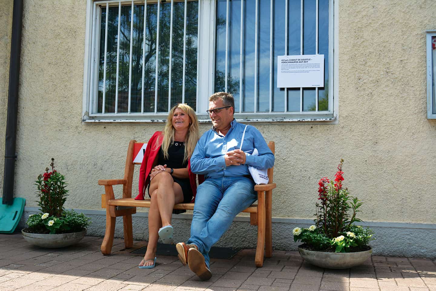 Die Bank war eine Spende der Gemeinde Marchtrenk im Stil der im öffentlichen Raum bereit stehenden Bänke, von denen jede ein anderes Motto trug.